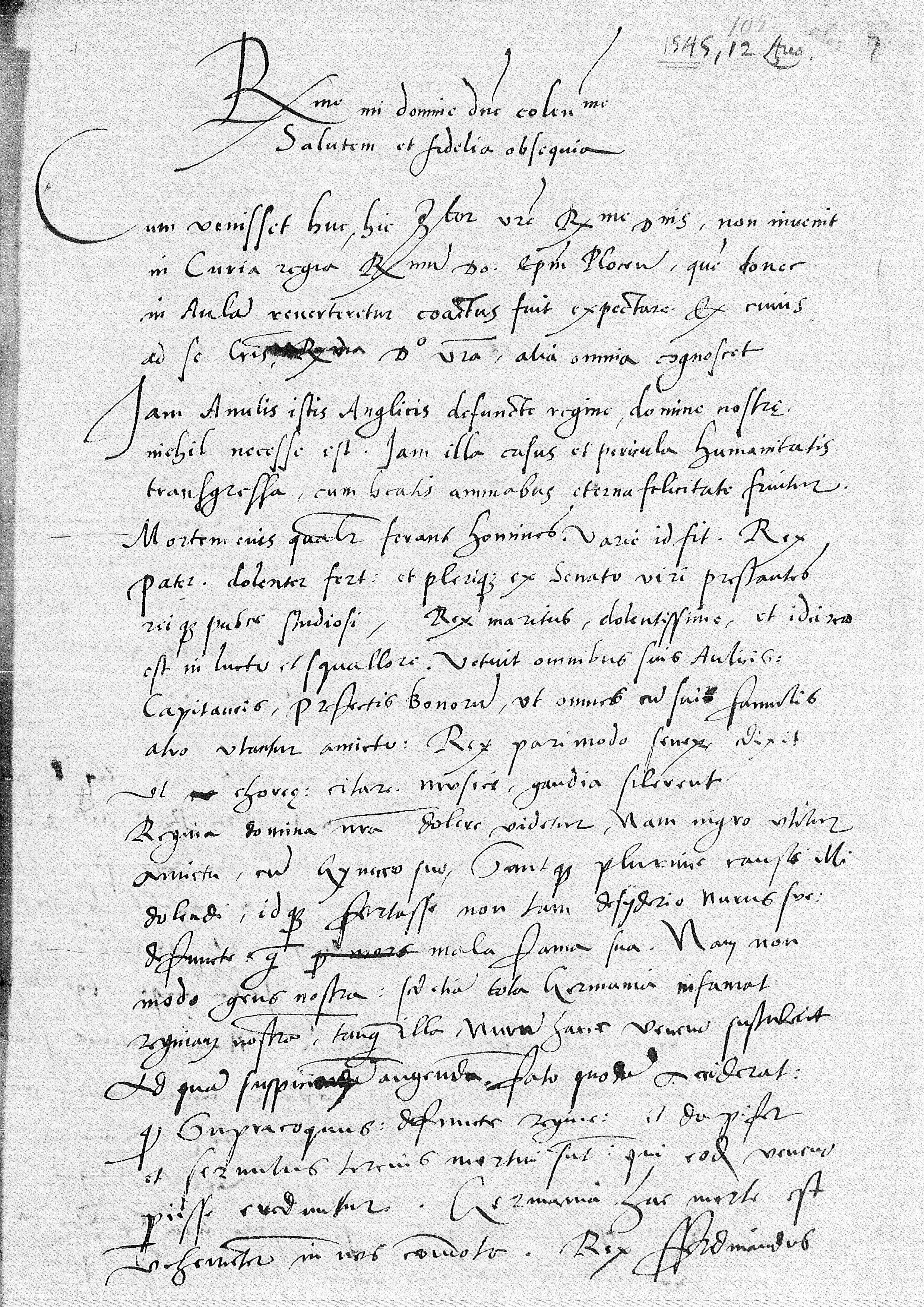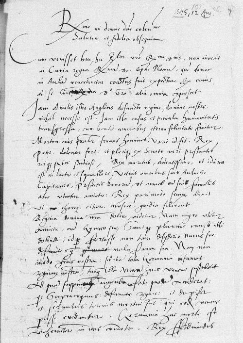 Source images IDS 22416 UUB, H. 155, f. 105-106, f. 105r (Latin fair copy autograph, 16th-century)