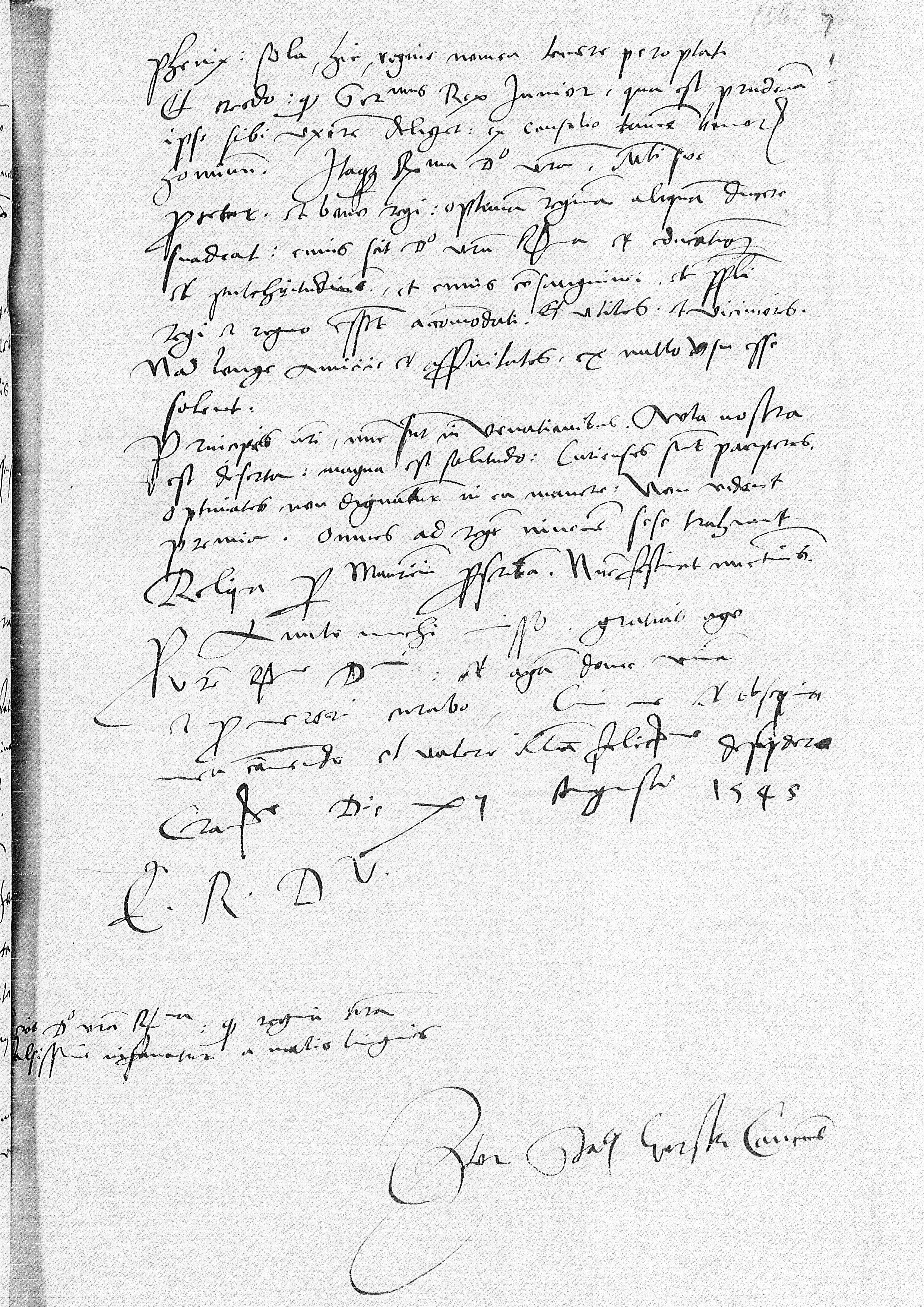 Source images IDS 22416 UUB, H. 155, f. 105-106, f. 106r (Latin fair copy autograph, 16th-century)